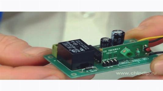 Дистанционное управление 2 кнопками от любого ИК пульта бытовой техники.