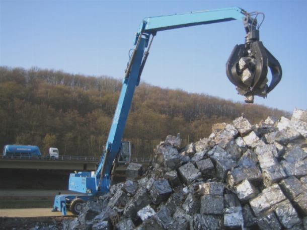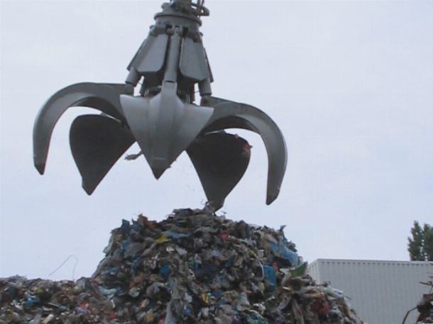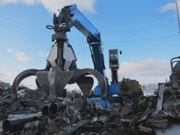 Грейферы перегружают лом металла.