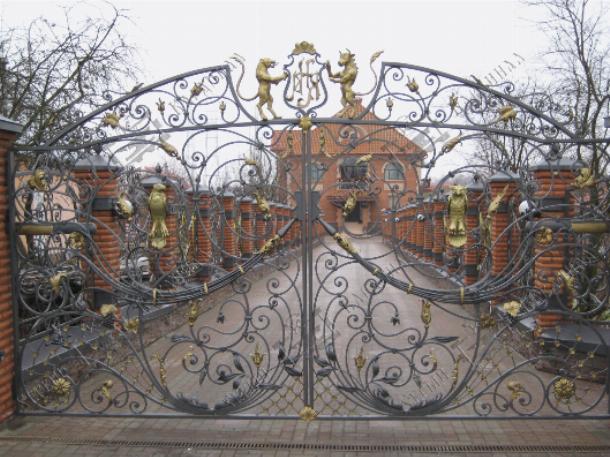 Самым приемлемым в эстетическом плане ограждением загородного дома – является элемент кованых ворот, выполненных в художественном стиле.