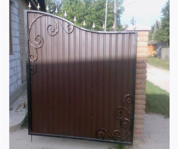 Забор из профлиста и ворота со встроенной калиткой.