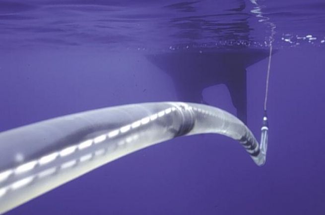 На специальный корабль с «откидным» задним бортом погружают оптоволоконный кабель. Погрузка проходит на нижней палубе, а кабель в изоляторе Kapton загружается со скоростью 150 метров в секунду в два отсека. В этих помещениях вмещается по 2000 километров (всего 4000) оптоволоконного кабеля. За этим процессом следят более ста человек 24 часа в сутки.