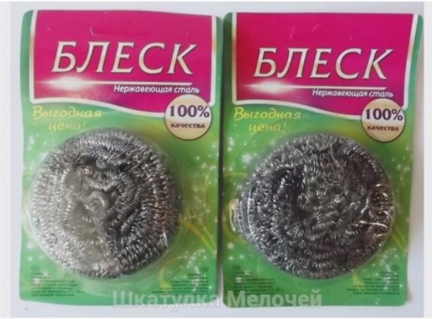 Металлические губки для мытья посуды изготовлены из лентообразной нити произведенной из высококачественной нержавеющей стали. Нить не подвержена коррозии, не расслаивается, не ломается (не рассыпается со временем) и не рвется.