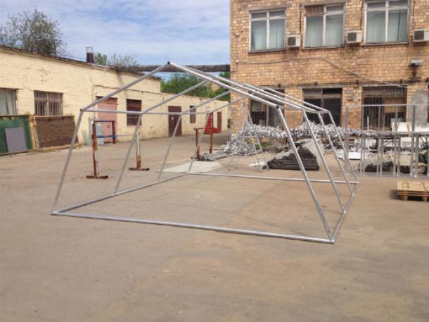 Прочный алюминиевый каркас с дополнительными упорами в основании и системой стальных тросов для большей устойчивости и защитой от произвольного складывания.