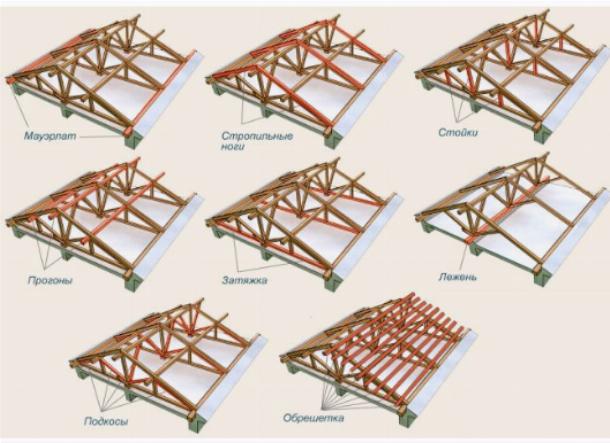 Монтаж деревянной обрешетки на фронтоны.